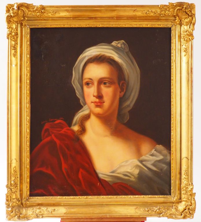 Elaïs SEVERAC. 'Portrait de jeune femme au turban'. Huile sur toile. Signée à gauche et datée 1867. Dim. : 63 x 52.5 cm. (restaurations)