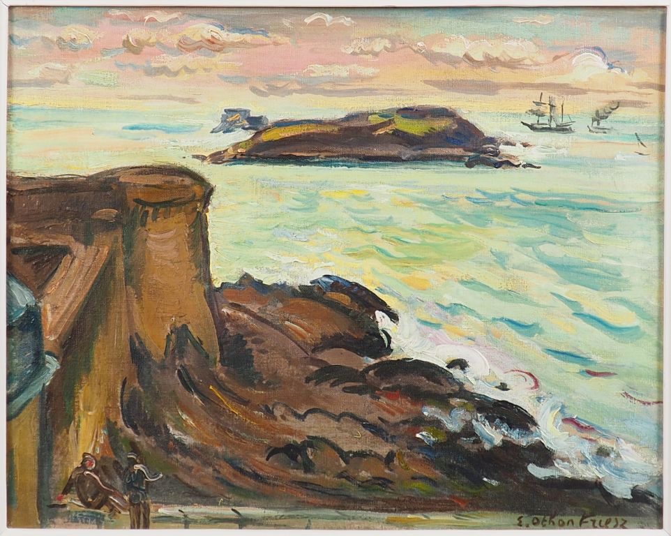 Emile OTHON FRIESZ (1879-1949) "Vue du Grand Bé à Saint-Malo" Huile sur toile, Signée en bas à droite. Dim. 33 x 42 cm. Expert : Frédérick et Pauline Chanoit