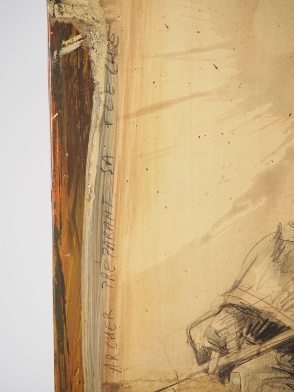 Lot de Emmanuel MICHEL. "le chasseur" Technique mixte, signée en bas à droit au prix de 80 à 120 € en vente aux enchères par l'hôtel des ventes Primardeco