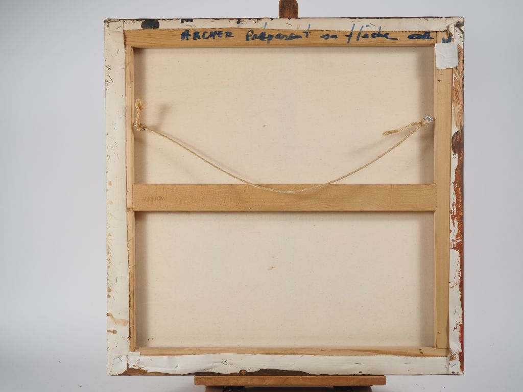 Emmanuel MICHEL. "le chasseur" Technique mixte, signée en bas à droite Dim. 60 x 60 cm