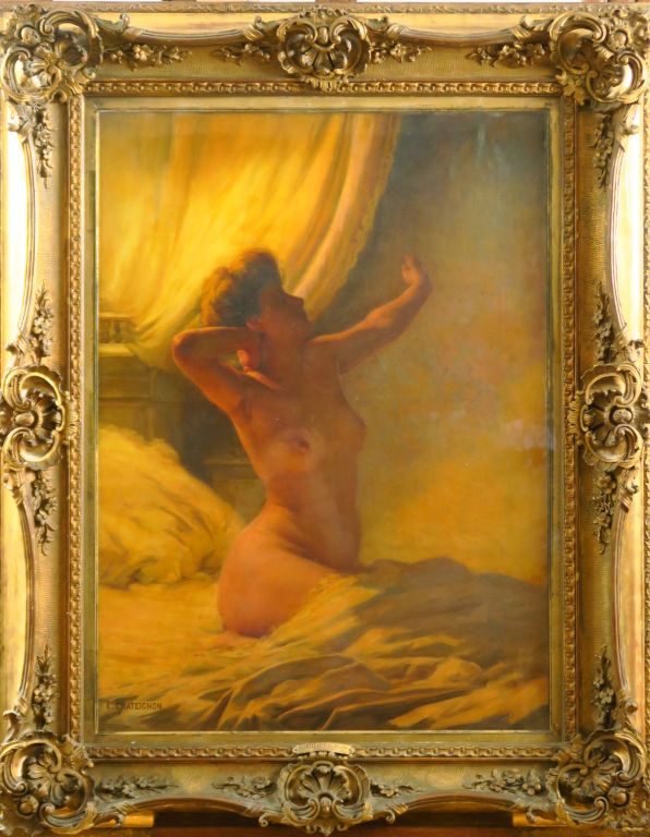 Ernest CHATEIGNON. "Insomnie". Huile sur toile, signée en bas à gauche. Dans son cadre d'origine en bois et stuc doré. Dim. 100 x 73,5 cm