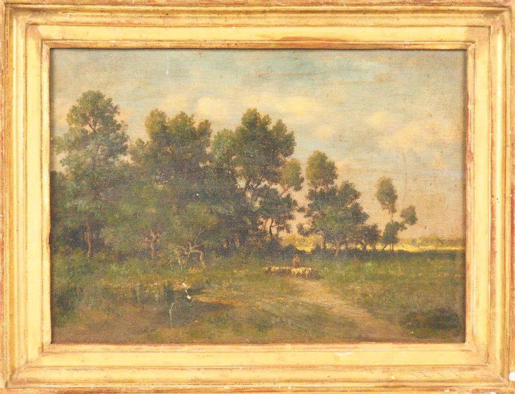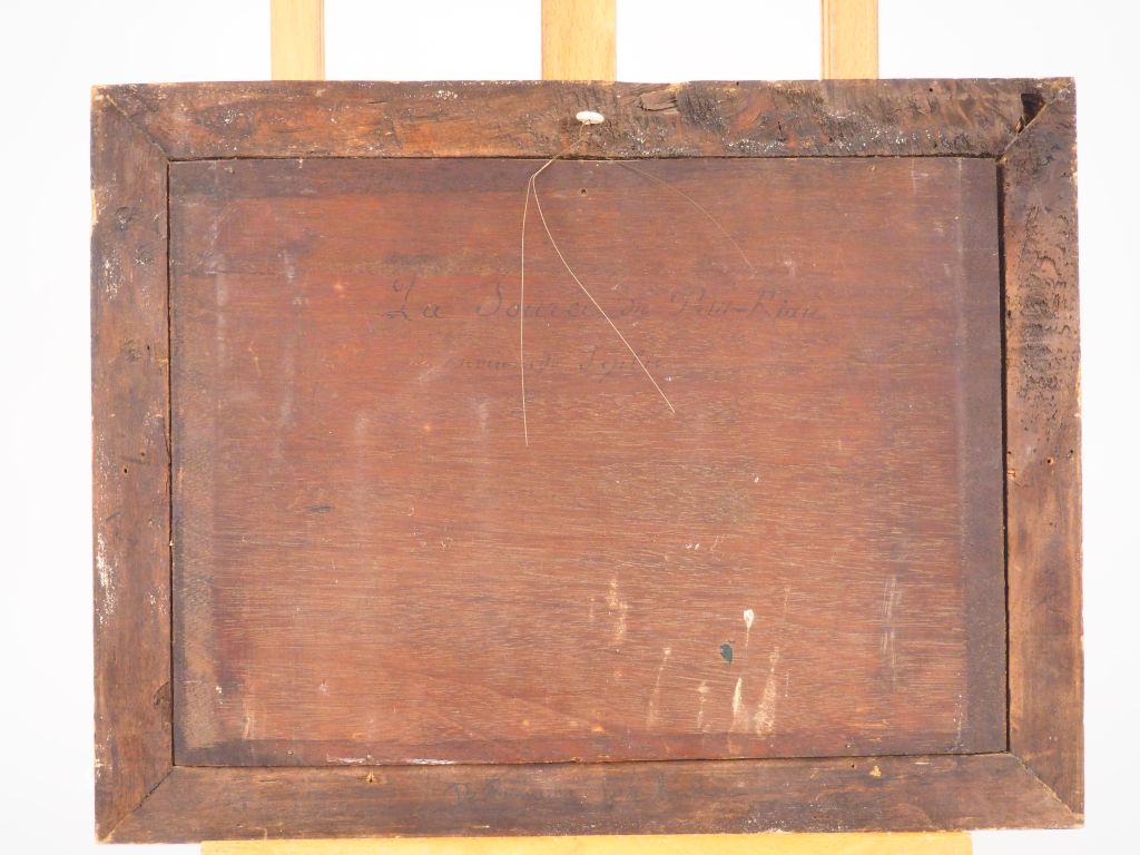 Ernest GUILLEMER. "La source du Petit Riau environs de Seulis". Huile sur panneau d'acajou signée en bas à droite. Dim. 25 x 34,2 cm.
