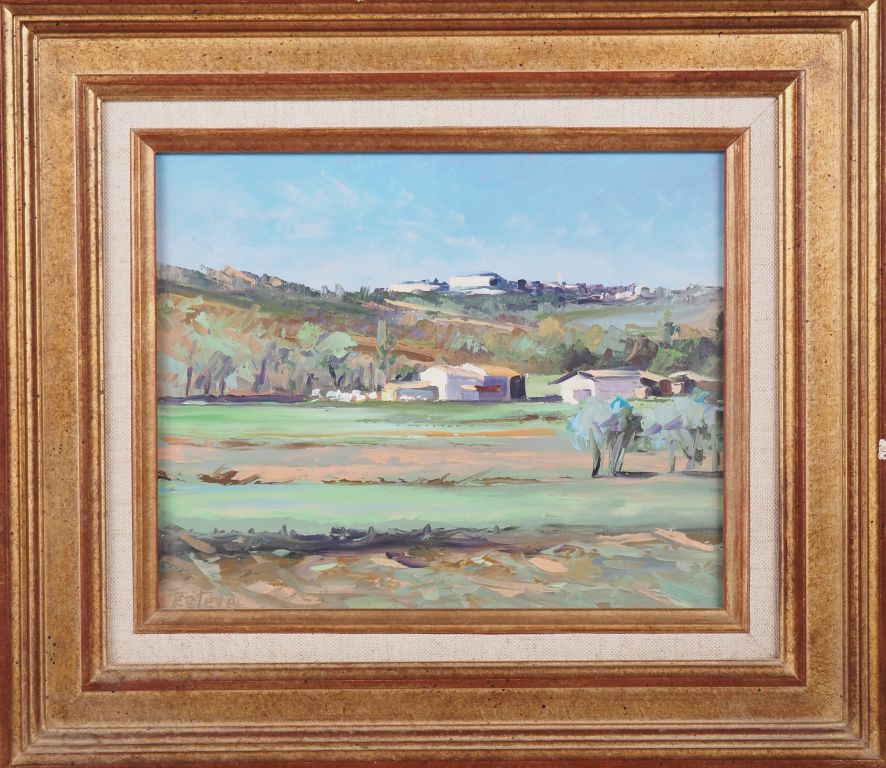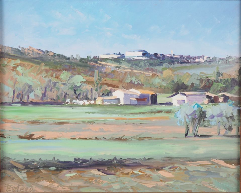 ESTEVE. "Paysage de l'Aude au printemps" Huile sur toile, signée en bas à gauche Dim. 22 x 27 cm