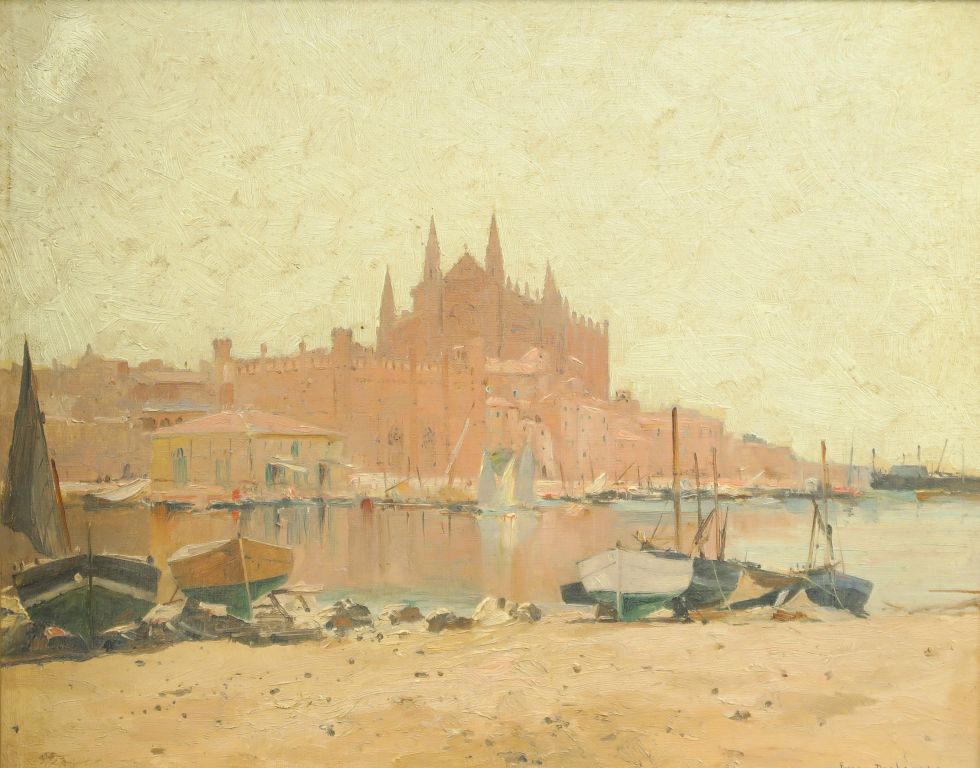 Eugène DESHAYES "Majorque" Huile sur toile. Signée en bas à droite. 32,5 x 40 cm (petite tâche d'humidité au dos de la toile)