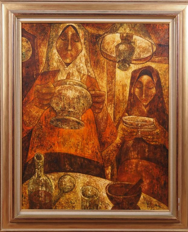 Lot de F. BAJEN. "Le souper" Huile sur toile, signée en haut à droite Dim. au prix de 350 à 500 € en vente aux enchères par l'hôtel des ventes Primardeco