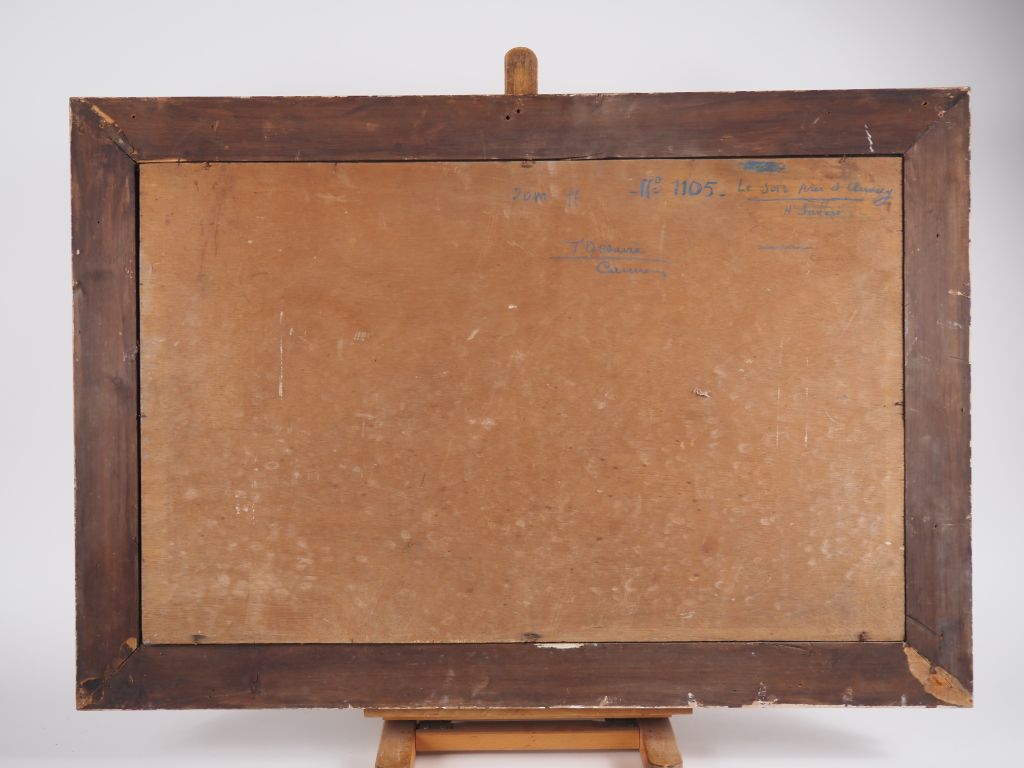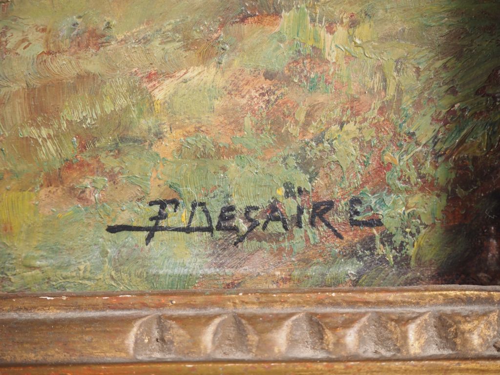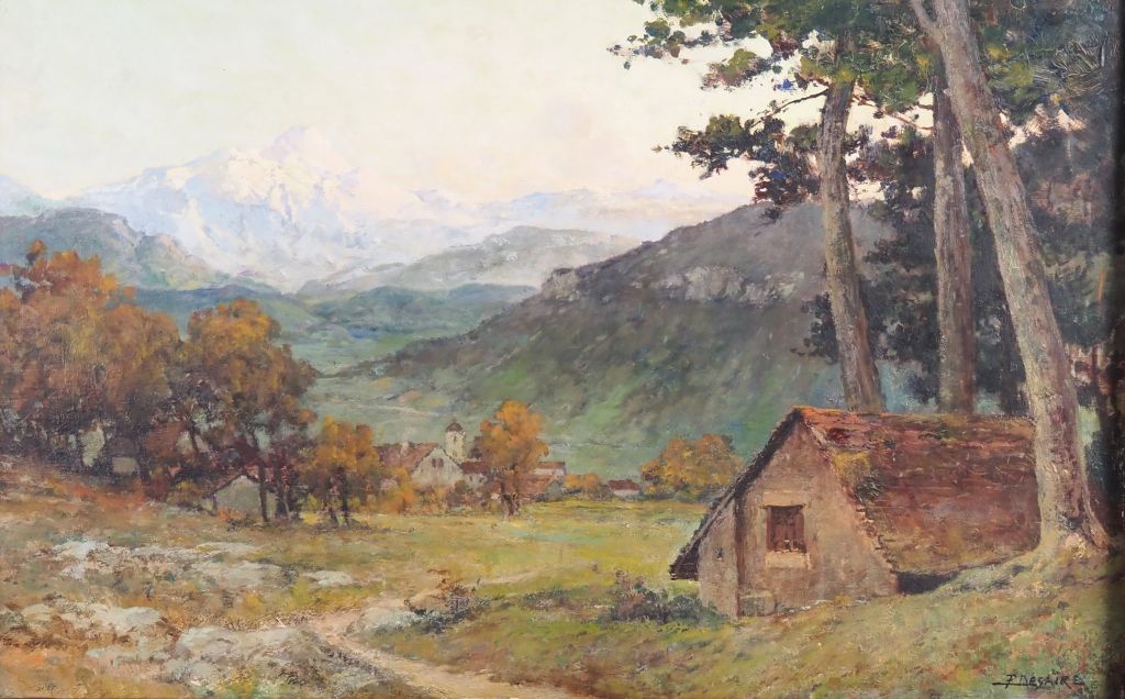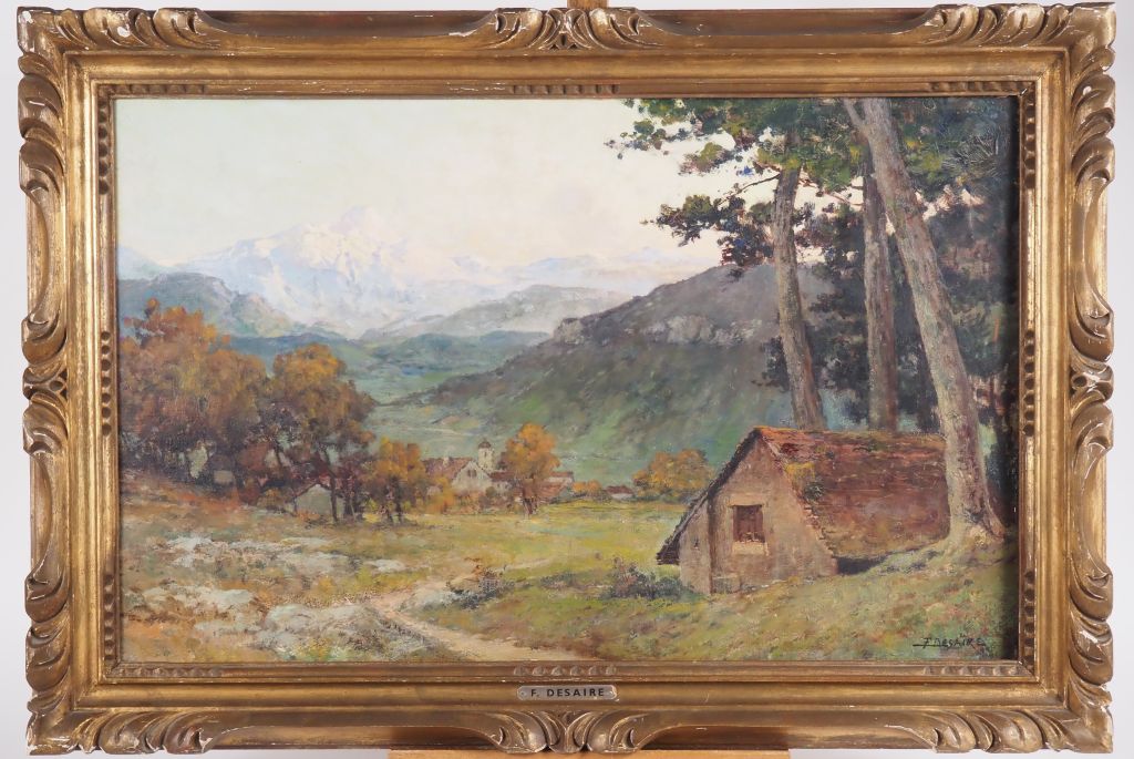 F. DESAIRE. "paysage de montagne, le soir près d'Annecy" Huile sur panneau, signée en bas à droite Dim. 46 x 73 cm