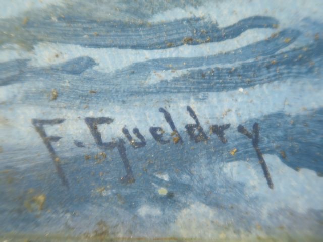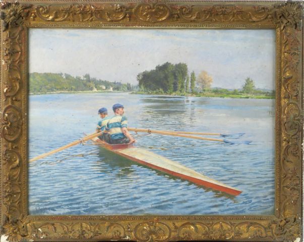 F.J. GUELDRY. 'Outrigger à deux'. Huile sur toile, signée en bas à gauche. (Petits accidents) Dim. : 45.5 x 60.5 cm.