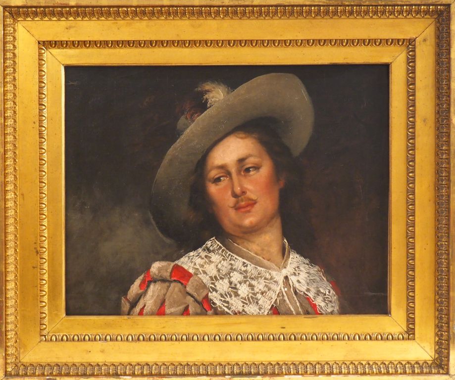 Ferdinand ROYBET. "portrait de gentilhomme" Huile sur toile, signée en bas à gauche dans un grand cadre en bois et stuc doré à décor de frise. Dim. 56 x 70 cm. (restaurations)