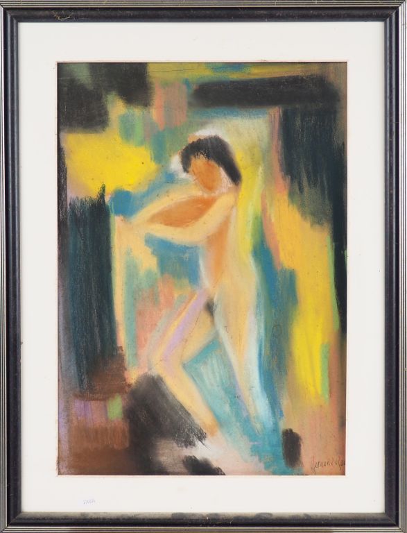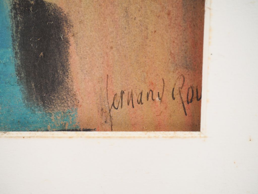 Fernand ROUX. "Nu dans un paysage abstrait". Fusain, signé en bas à droite. Dim. 50 x 35 cm
