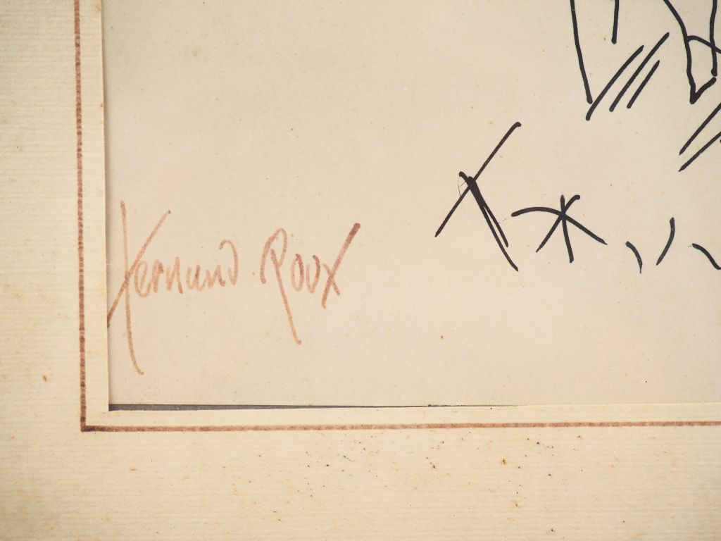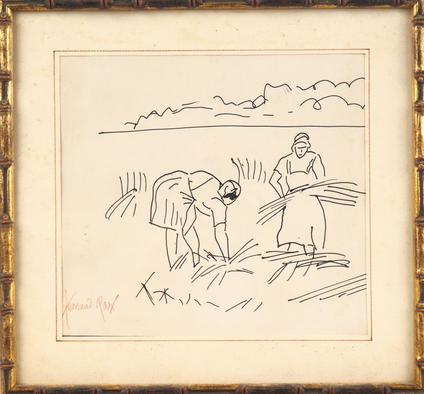 Fernand ROUX. "Paysannes aux champs". Dessin signé en bas à gauche. Dim. (à vue) : 21,5 x 23,5 cm.
