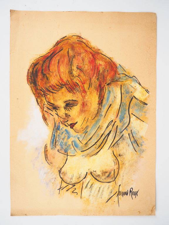 Fernand ROUX. "Portrait de femme". Technique mixte, signée en bas à droite. Dim. 70 x 50 cm.