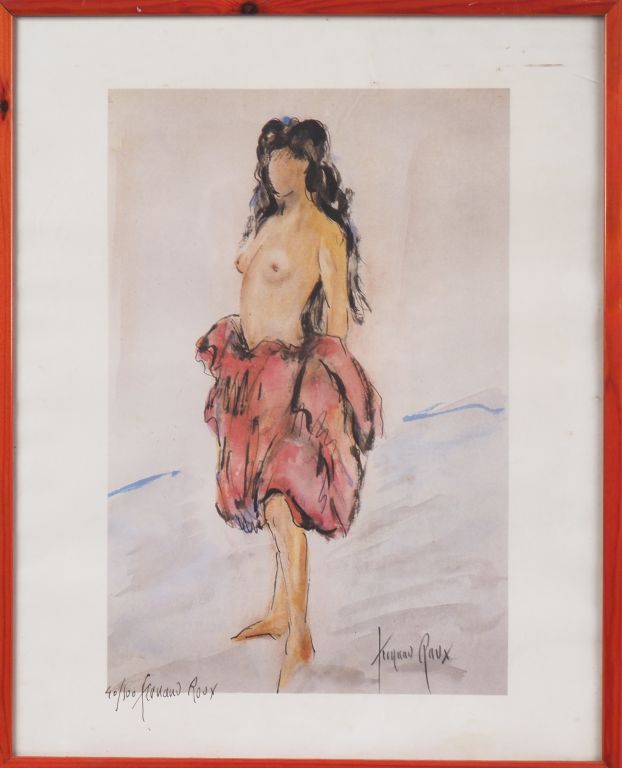 Fernand ROUX. "Portrait de jeune fille en pied". Lithographie numérotée 40/100 et signée en bas à gauche. Dim. 49 x 39 cm.
