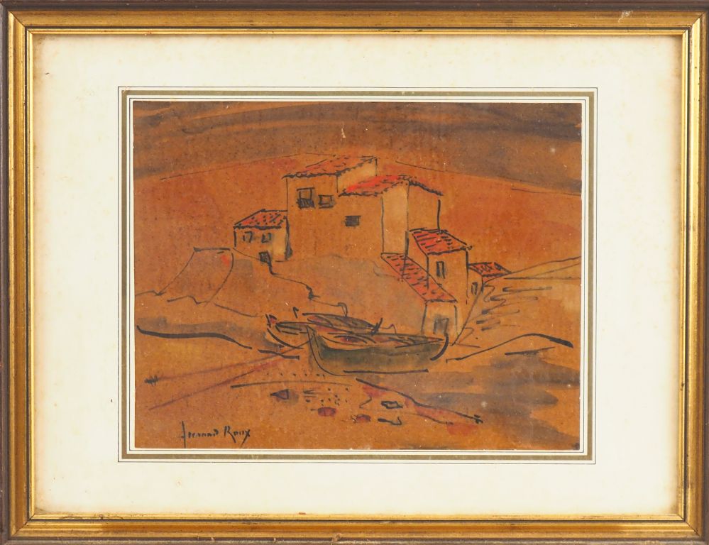 Lot de Fernand ROUX. "Vue de village". Aquarelle, signée en bas à droite. Dim au prix de 40 à 60 € en vente aux enchères par l'hôtel des ventes Primardeco