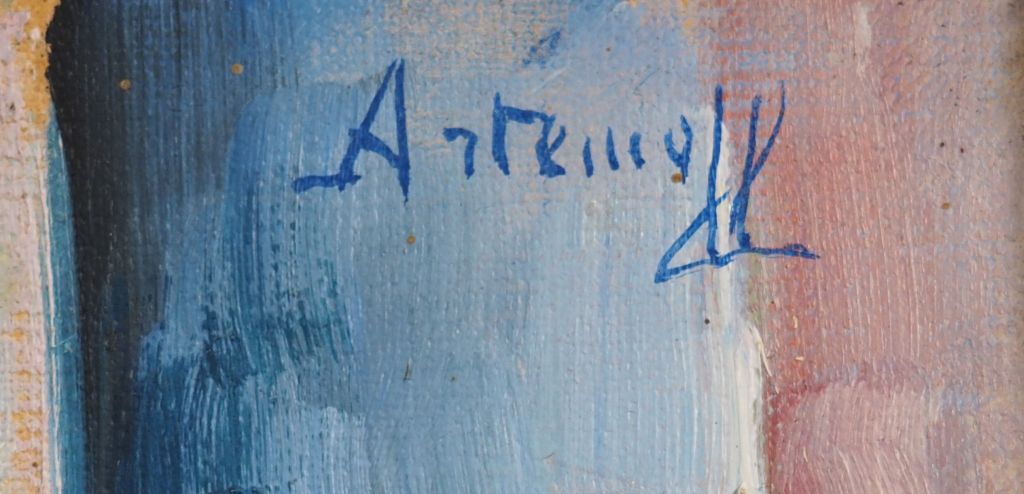 G. ARTEMOFF. "Mère et son enfant". Huile sur carton, signée en haut à droite. Dim. : 55 x 37,5 cm.