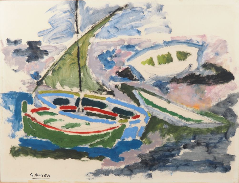 G. BOYER. "marine" Huile sur papier, signée en bas à gauche Dim. 48,5 x 63 cm