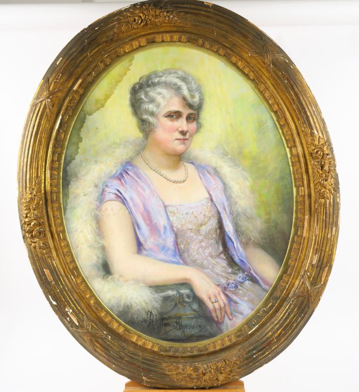 G. DEBILLEMONT CHARDON. "Portrait de dame en médaillon" Pastel. Signé en bas. Dim. 81 x 65 cm (mouillures, cadre accidenté)