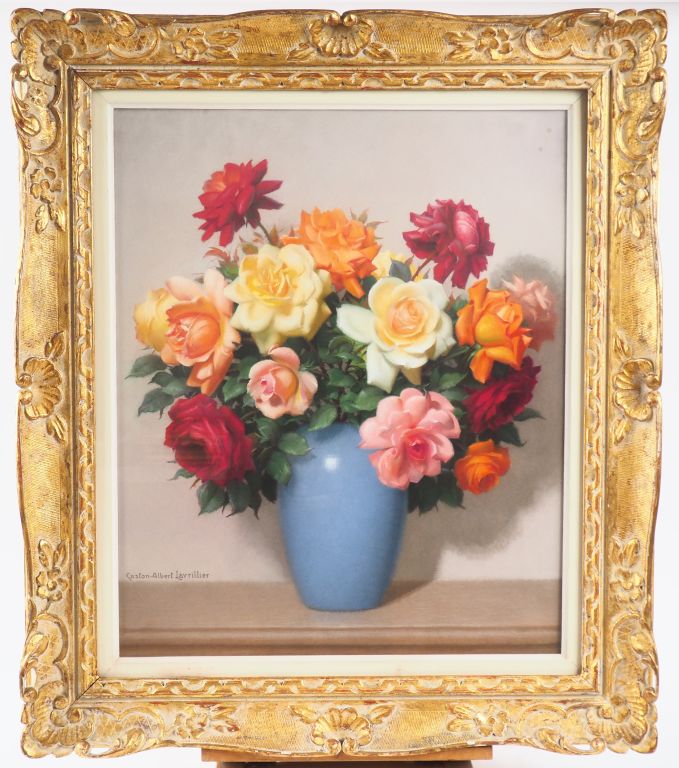 Gaston Albert LAVRILLIER. "Bouquet de roses". Pastel signé en bas à gauche. Dim. À vue : 59 x 48 cm.