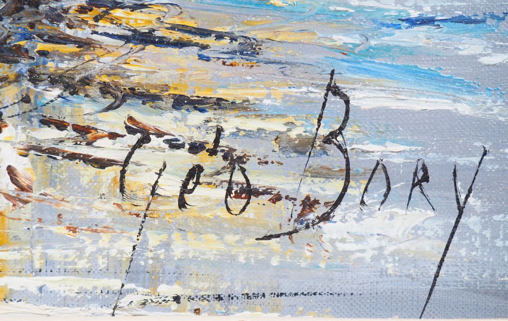 GEO BORY. "Thoniers à l'ancre" Huile sur toile. Signée en bas à droite. Dim : 45,5 x 55 cm.