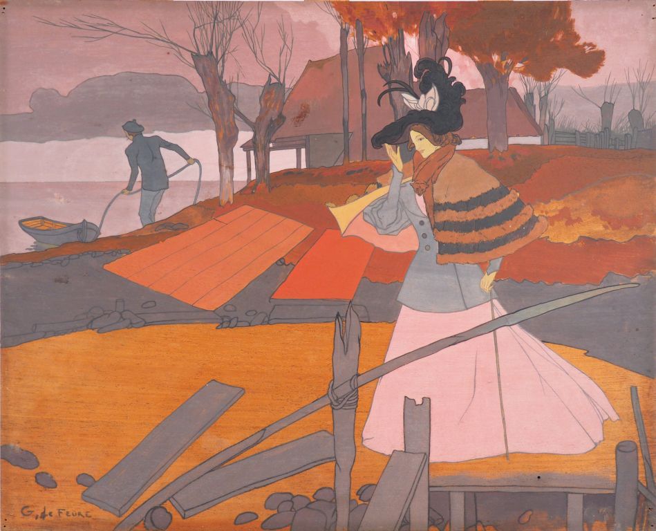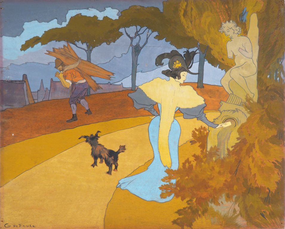 Georges de FEURE. 'Le billet' et 'La promenade en barque'. Huiles sur panneaux d'acajou, signées en bas à gauche. Dim. : 37 x 46 cm.