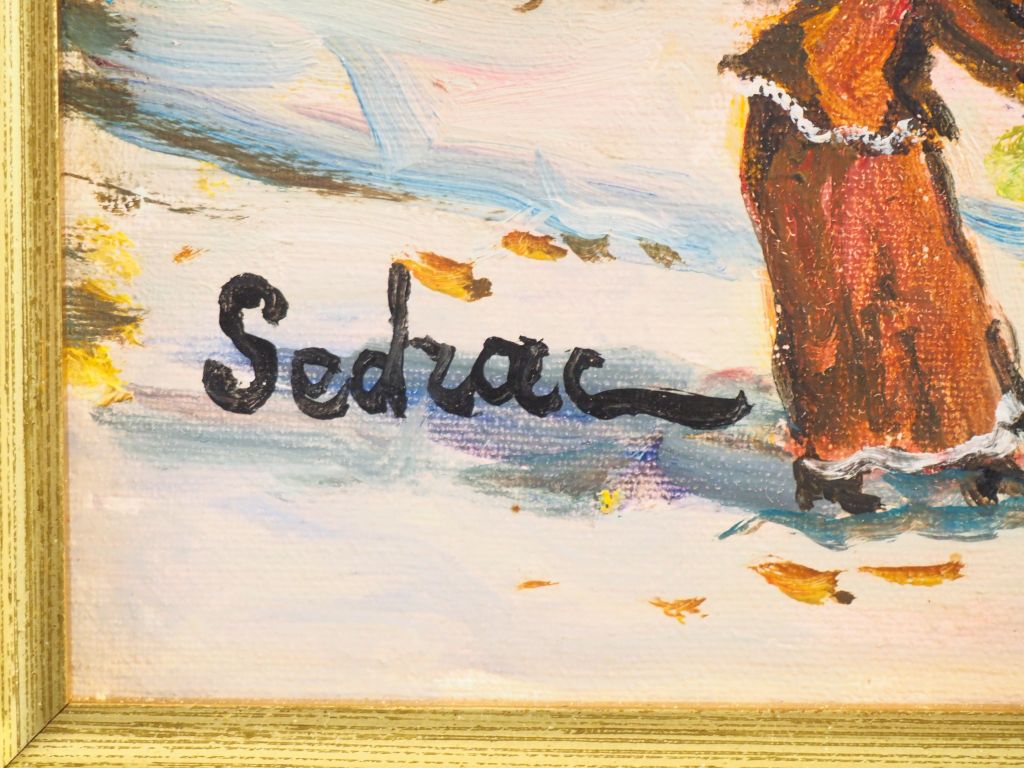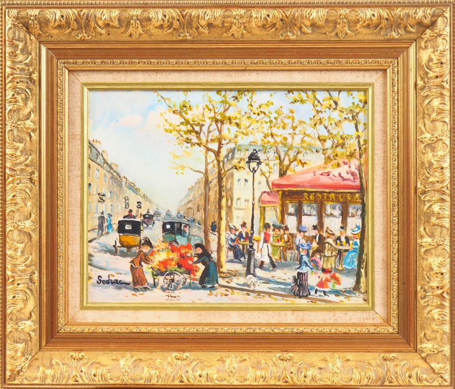 Georges SEDRAC. "Place animée à Paris". Huile sur toile, signée en bas à gauche Dim. 27 X 35 cm.