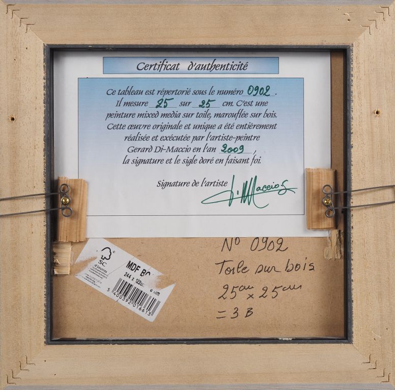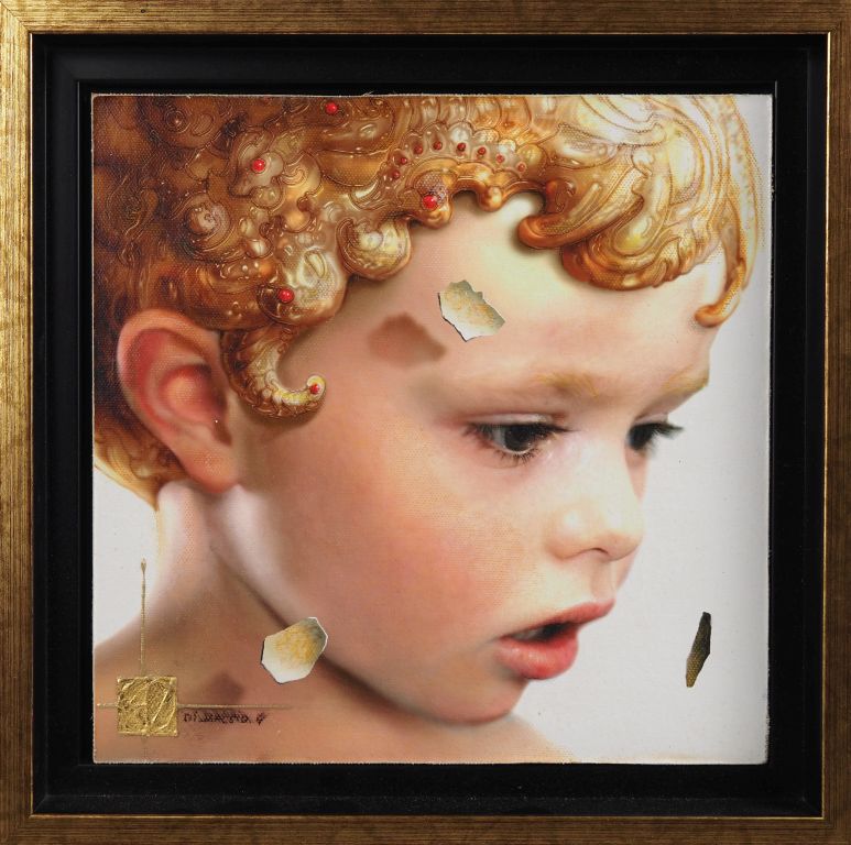 Gérard DI MACCIO. "Portrait d'enfant blond" Huile sur toile, marouflée, signée en bas à gauche Dim. 24,5 x 24,5 cm