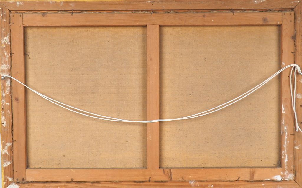 GODCHAUX. "Bord de mer animé". Huile sur toile, signée en bas à gauche. Dim. 55 x 92 cm. (très légères tâches)