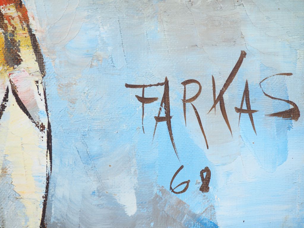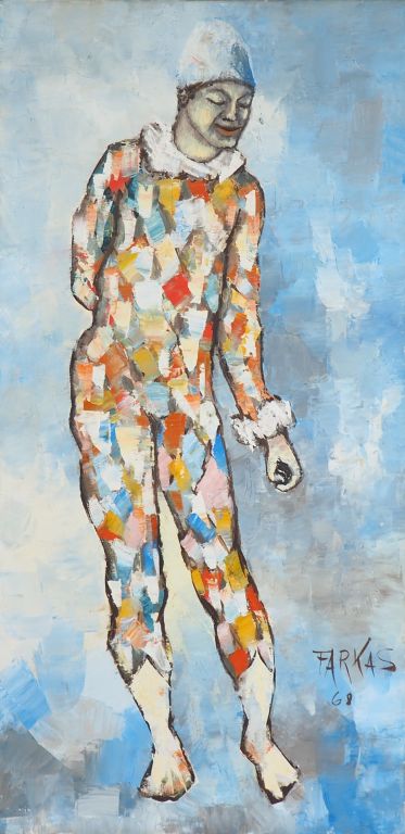 Gyorgy FARKAS. "Harlequin". Huile sur toile, signée en bas à droite et datée 1968. Dim. 80,5 x 40 cm.
