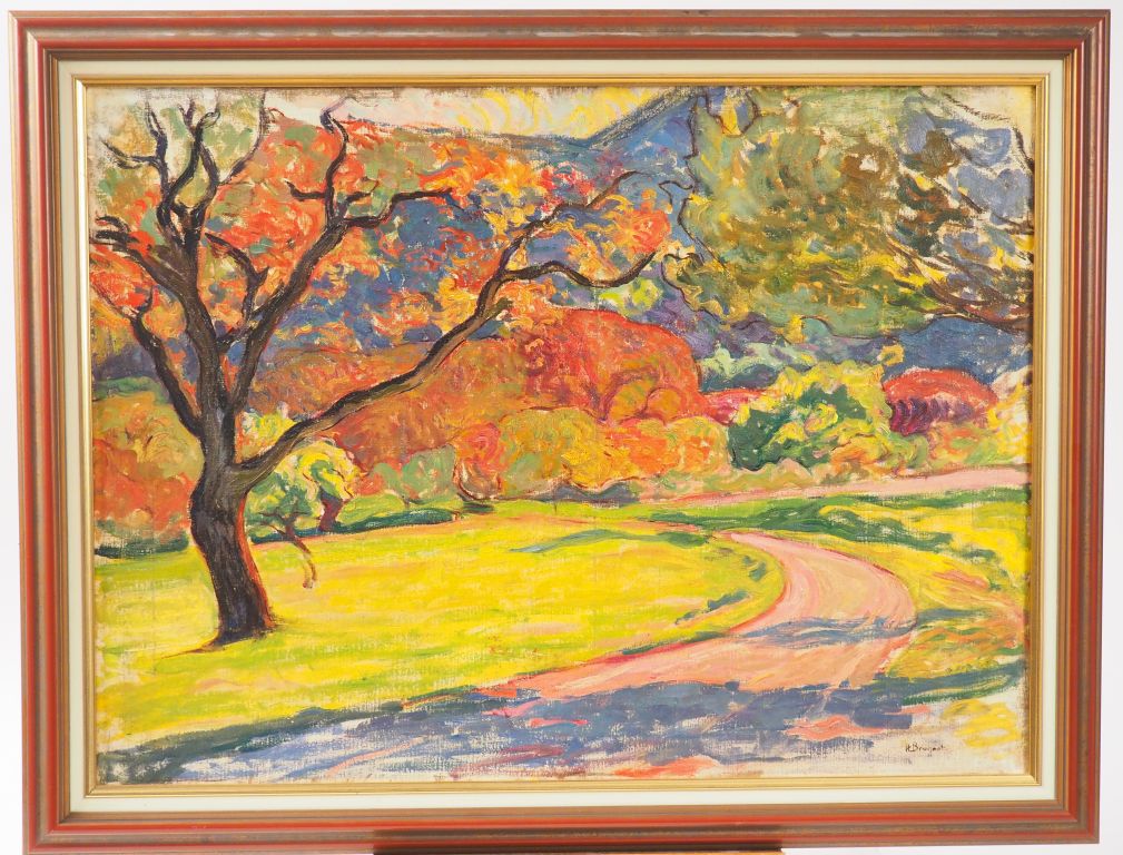 H. BRUGNOT "Paysage fauve" Huile sur toile, signée en bas à droite Dim. 54 x 73,5 cm