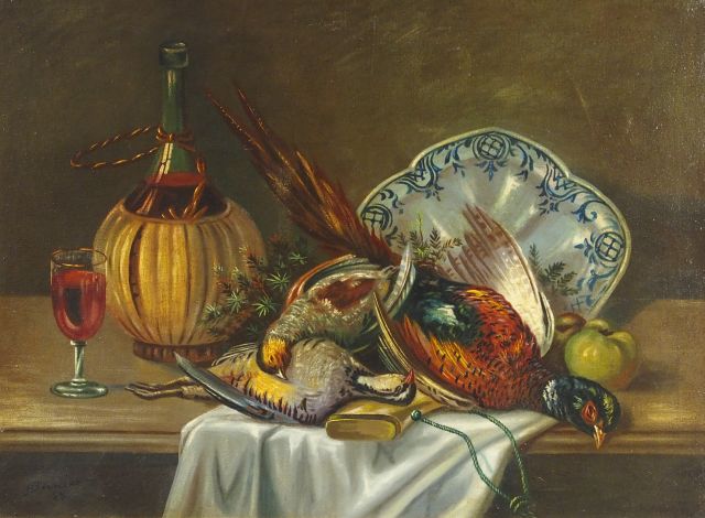 Hans Otto BAUMANN "Nature morte aux faisans". Huile sur toile, signée en bas à gauche. 55 x 74 cm