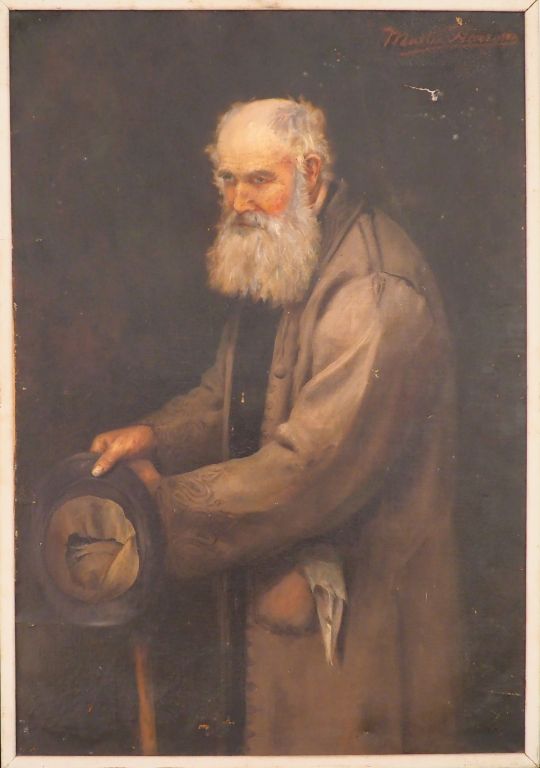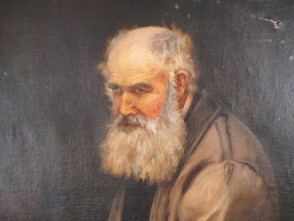 HARISSON. "portrait de vieillard" Grande huile sur toile, signée en haut à droite Dim. 116 x 81 cm (accidents et restaurations)