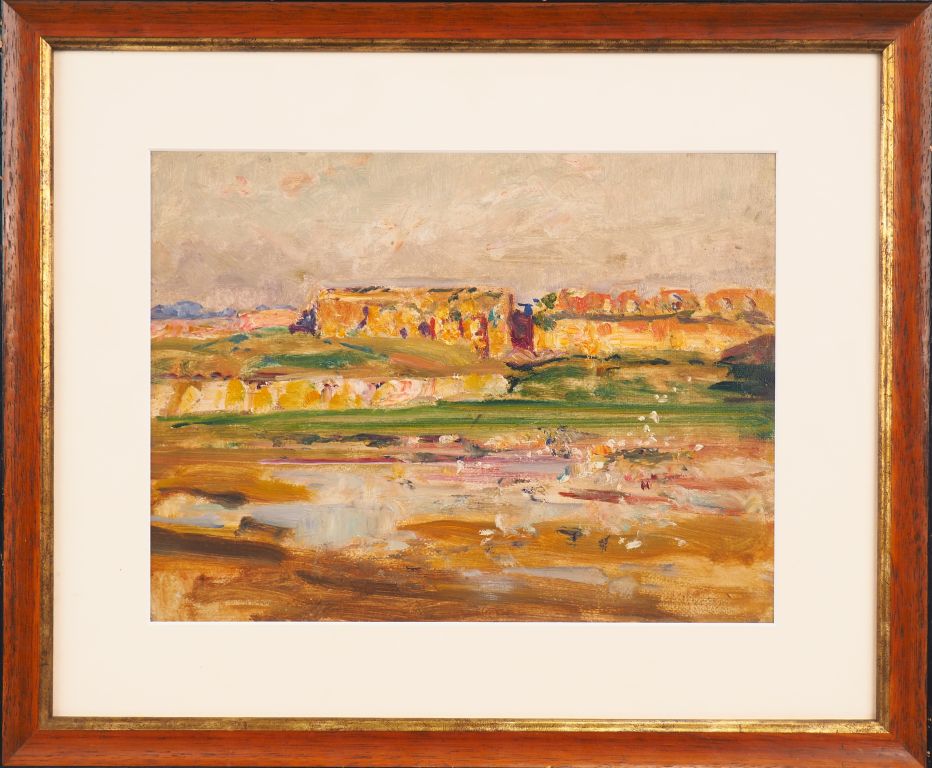 Henri ROUSSEAU. "Grand bassin de Meknès" Huile sur panneau, tampon d'atelier au dos. Dim. 21,5 x 29 cm.