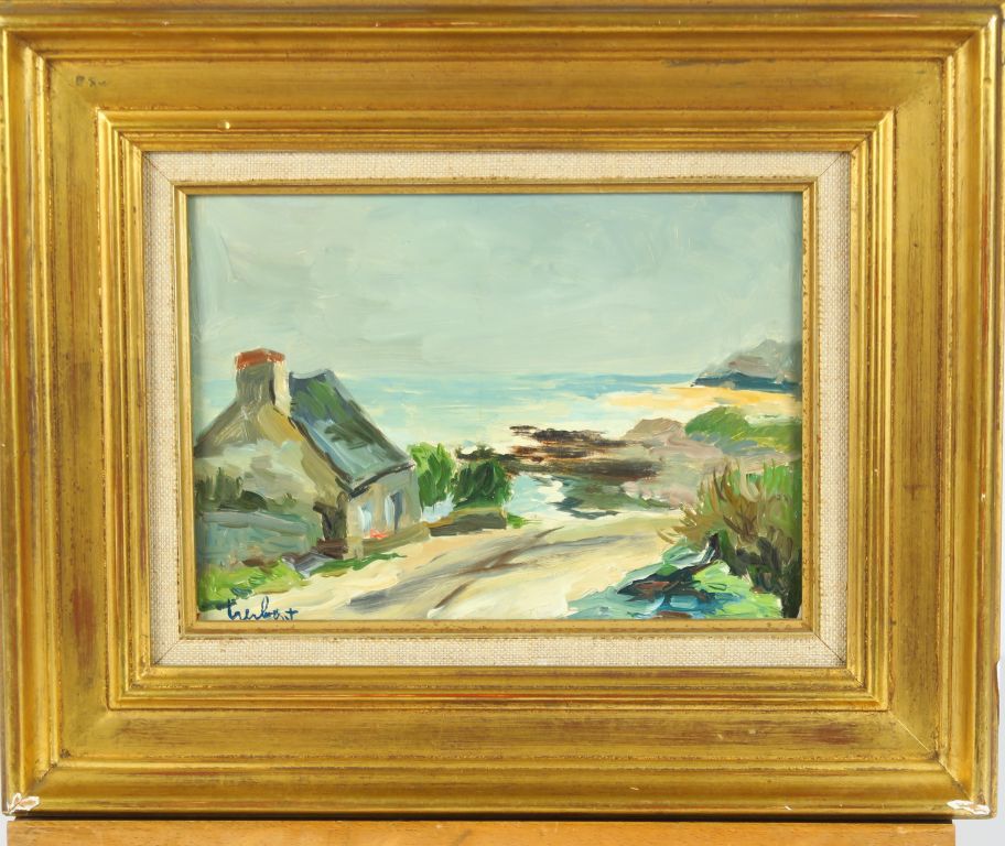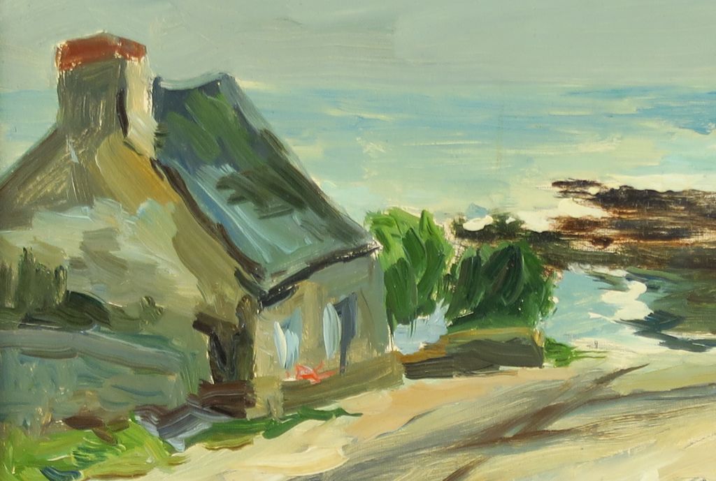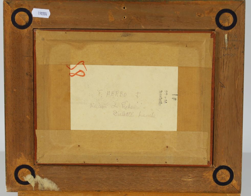 HERBO. "La maison du pêcheur" Huile sur carton, signée en bas à gauche. Dim. 14,5 x 21 cm