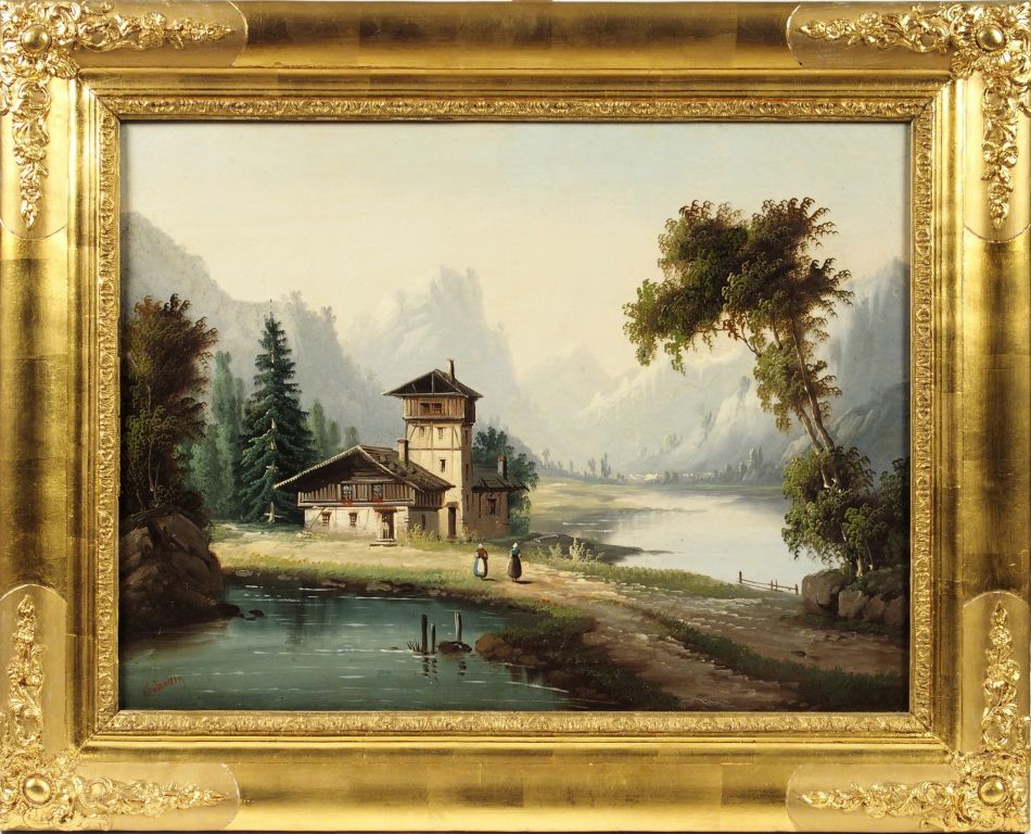 JABOUIN 'Paysage de montagne animé'. Huile sur toile, signée en bas à ...