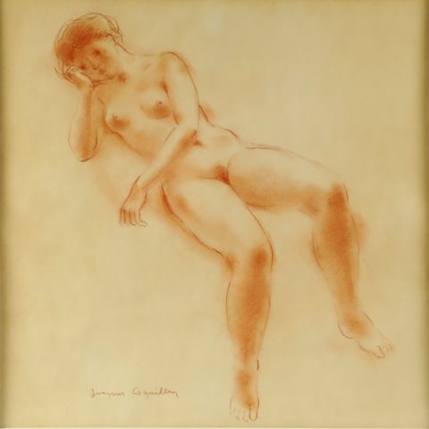 JACQUES COQUILLAY "Etude de jeunes filles nues". Deux sanguines, signées. 41 x 41,5 cm et 40,5 x 40,5 cm