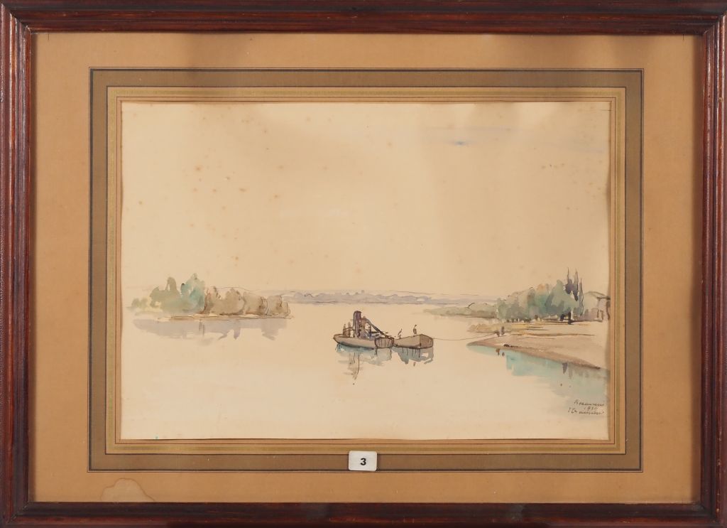 Lot de Jacques TRAVERSIER. "fleuve animé" Aquarelle signée en bas à droite D au prix de 40 à 60 € en vente aux enchères par l'hôtel des ventes Primardeco