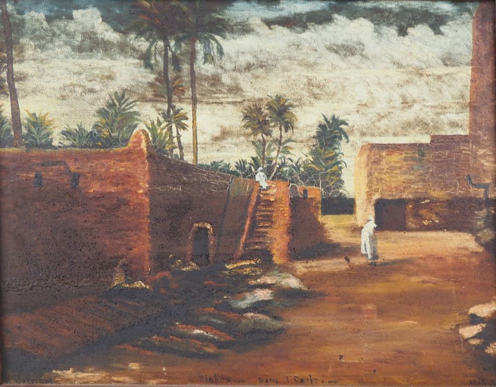 Lot de JAMBES. "Biskra dans l'Oasis" Huile sur toile, signée en bas à gauche au prix de 50 à 80 € en vente aux enchères par l'hôtel des ventes Primardeco