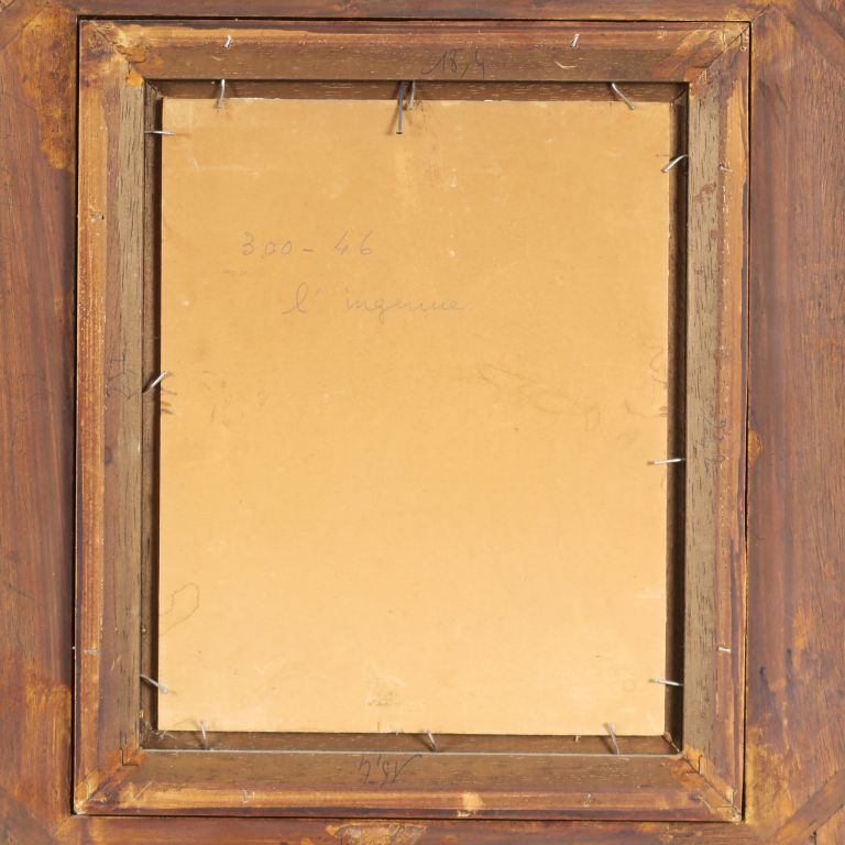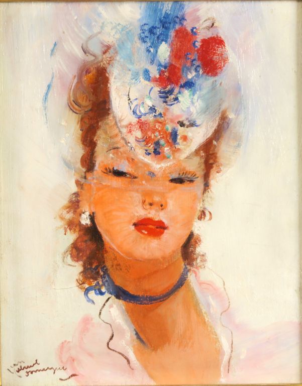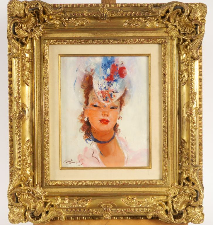 JEAN GABRIEL DOMERGUE. "L'ingénue". Huile sur panneau. Signée en bas à gauche. Dim : 23,5 x 19 cm.