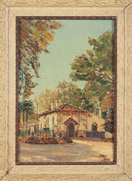 Jean GUY. "maison et jardin méridionaux" Huile sur panneau, signée en bas à droite Dim. 40 x 27,5 cm