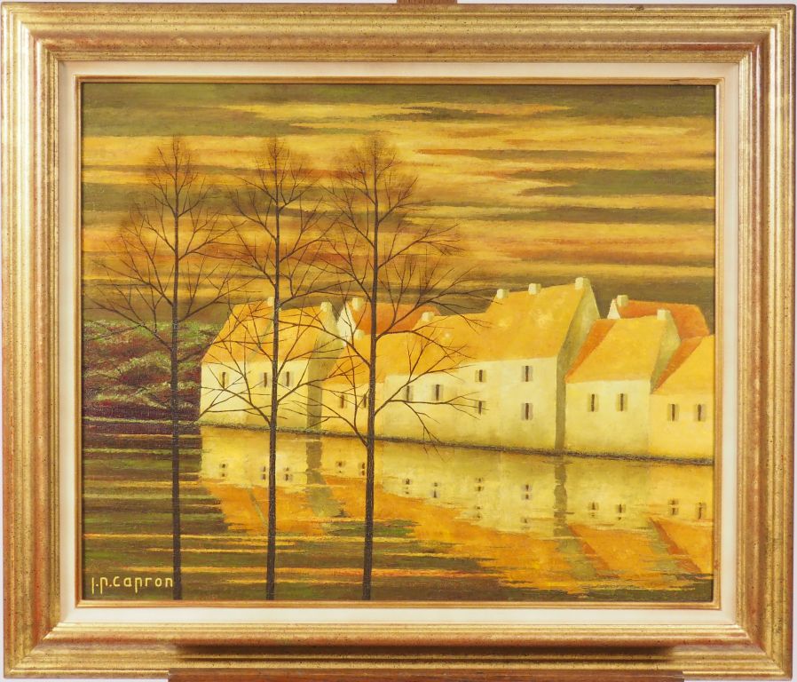 Jean-Pierre CAPRON. "Lumière à la tombée du jour". Huile sur toile. Signée en bas à gauche. Dim. : 60 x 73 cm.
