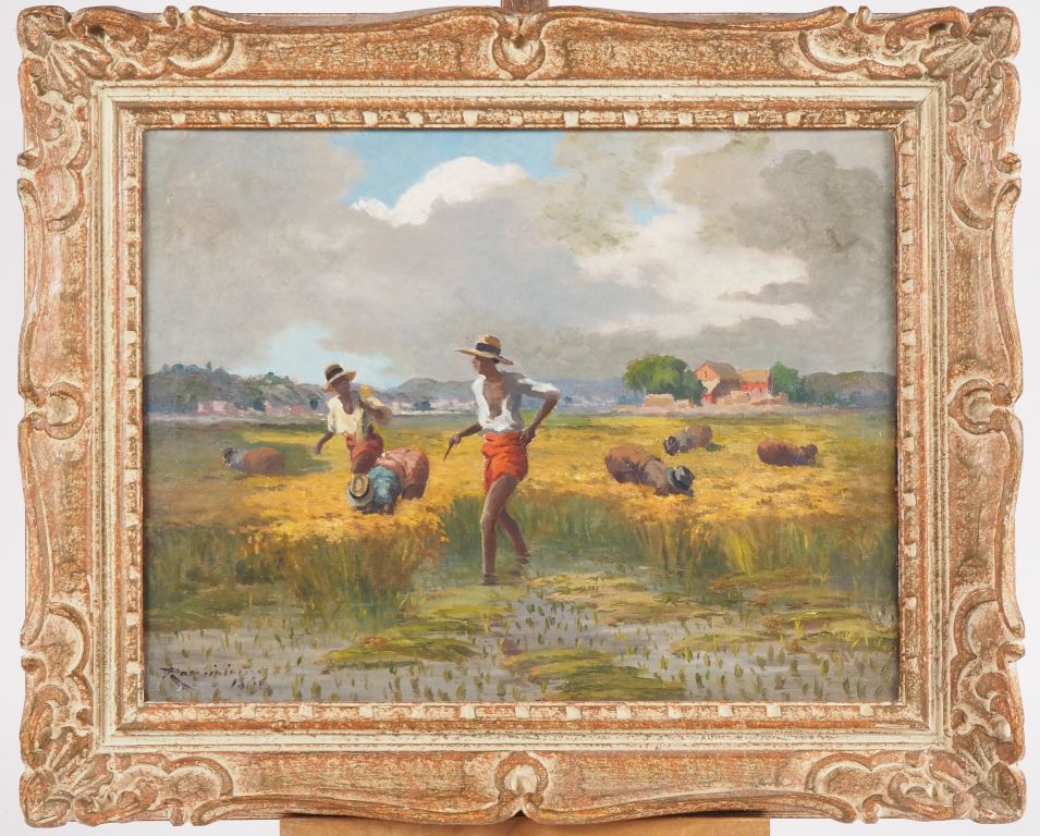 Jean RAMBININTSOA. "les moissons" Huile sur toile, signée en bas à gauche et datée 1941 Dim. 39 x 50 cm