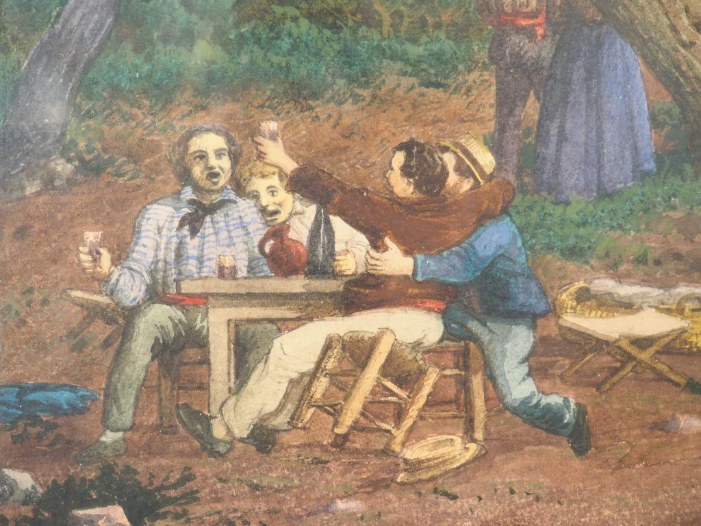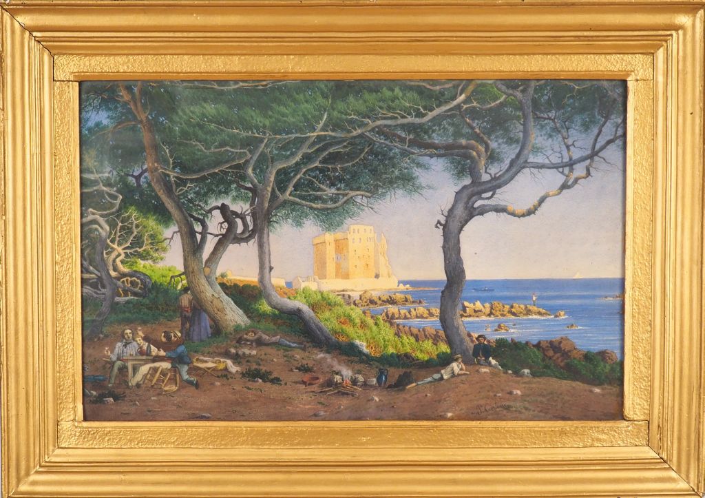 Joseph CONTINI. "Fortification près de Cannes". Aquarelle signée en bas à gauche. Dim. 47 x 74,5 cm.