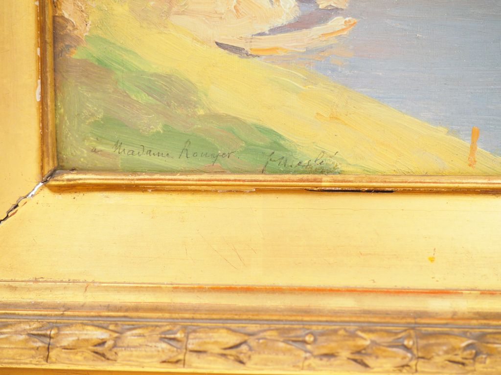 Joseph Paul MESLÉ. "Paysage fluvial". Huile sur panneau signée en bas à gauche. Dim. : 18,5 x 24 cm.