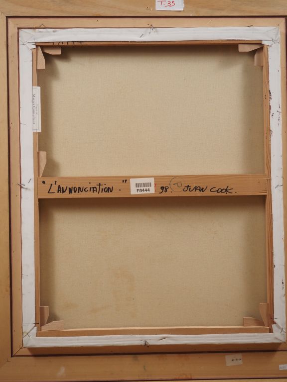 Lot de Juan COOK. "l'annonciation" Huile sur toile, signée en bas à gauche au prix de 100 à 150 € en vente aux enchères par l'hôtel des ventes Primardeco