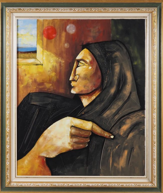 Juan COOK. "l'annonciation" Huile sur toile, signée en bas à gauche ...