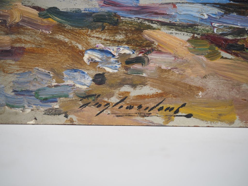 Julien Gustave GAGLIARDINI. "Pêcheurs et barques" Huile sur panneau, signée en bas à gauche. Dim. 27 x 35 cm