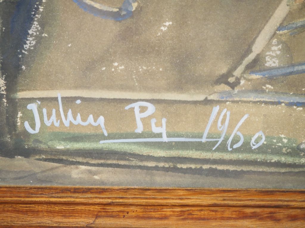 Julien PY. "Personnages et divinités paiennes" Aquarelle, signée en bas à droite et datée 1960 Dim.47 x 37 cm