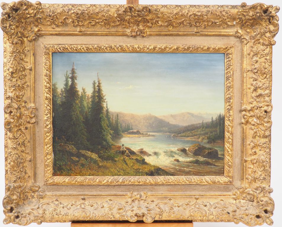 KIRCHMANT "Rivière dans les Alpes bavaroises" Huile sur panneau. Signée en bas à gauche. Dans un cadre en bois doré. 33 x 46 cm