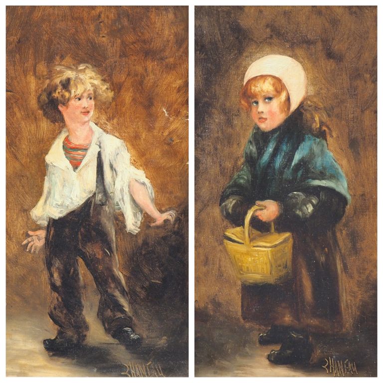 L. HAMEAU. "Les poulbots". Paire d'huiles sur toile, signées en bas à droite. Dim. 46 x 26,5 cm. (Restaurations).