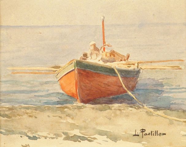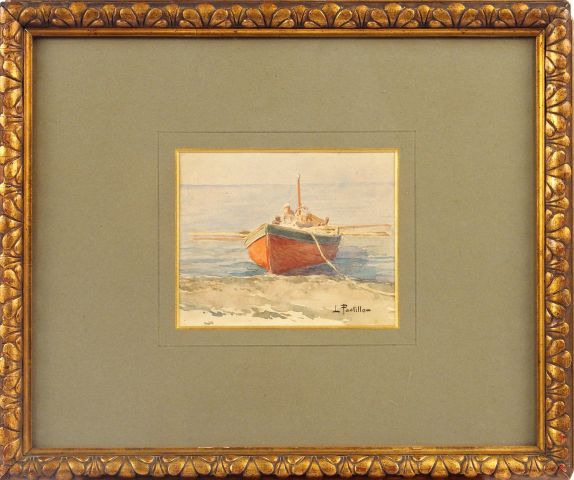 L. PASTILLON "La barque". Aquarelle, signée en bas à droite. 13,5 x 17...