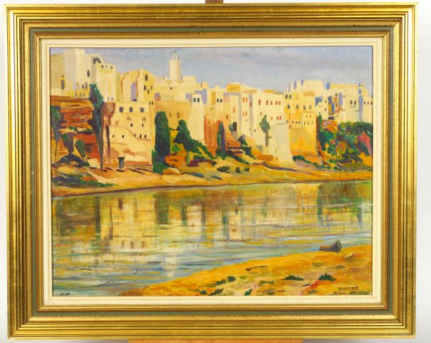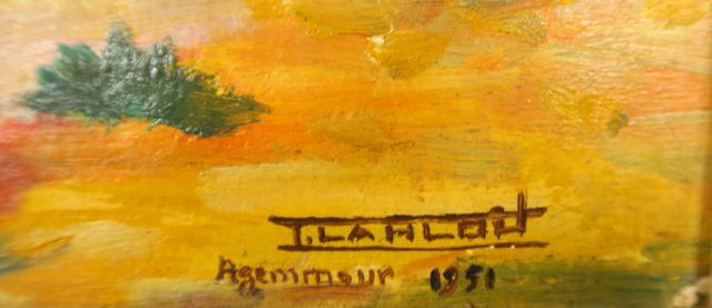 LAHLOU "Vue d'Agemmour" Huile sur panneau, signée en bas à droite et datée 1951. Dim. 50 x 64 cm